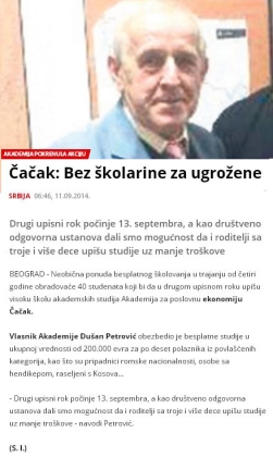 Власник Академије Душан Петровић обезбедио је бесплатне студије у укупној вредности од 200.000 евра за по десет полазника из повлашћених категорија, као што су припадници ромске националности, особе са хендикепом, расељена лица са Косова…